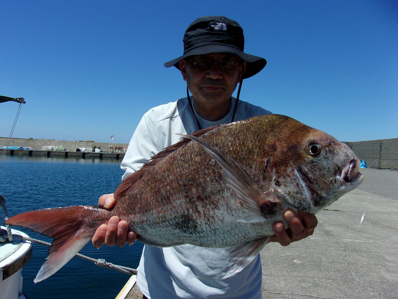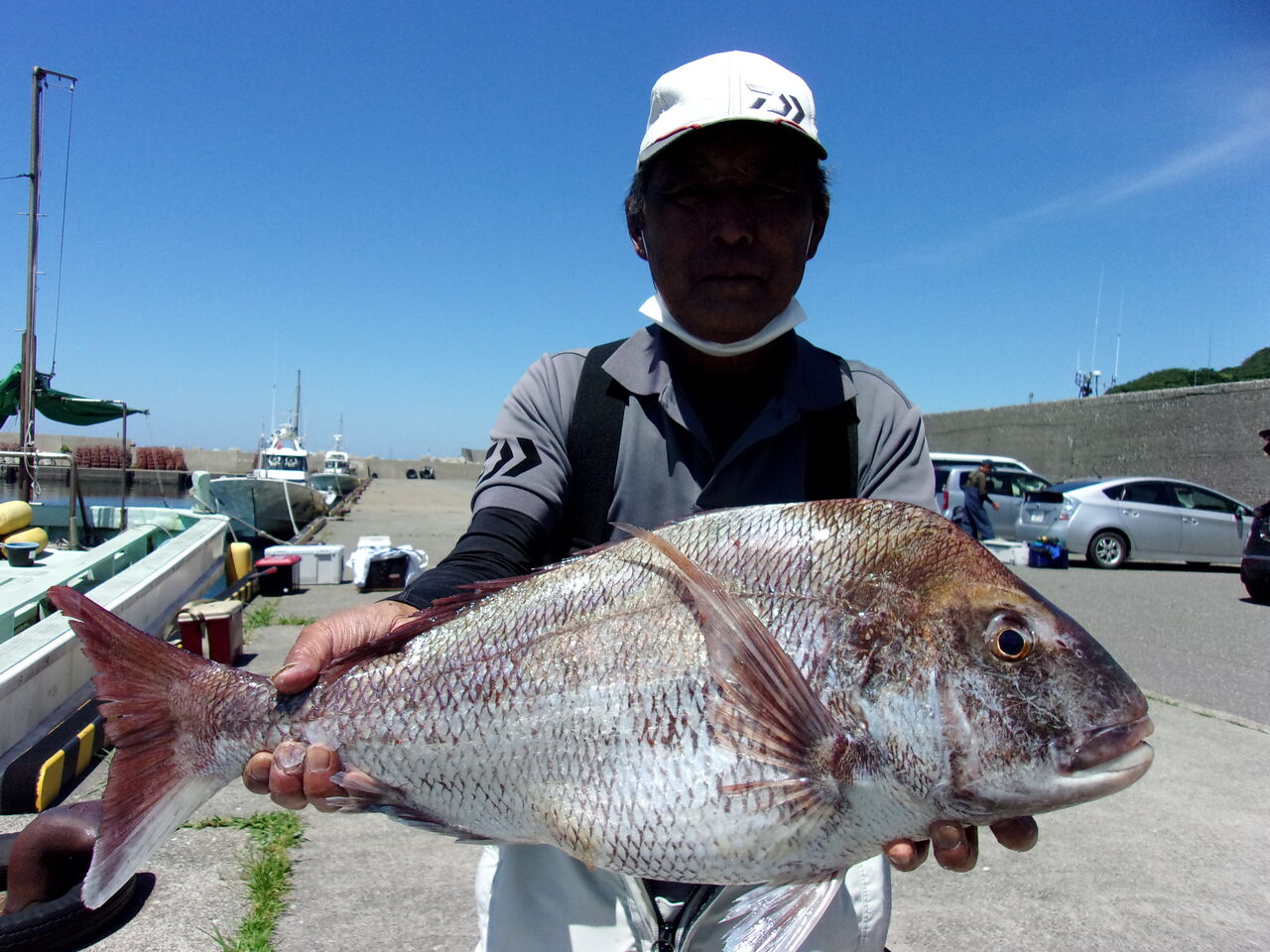 おひとりコマセマダイ初挑戦のお客さん。仕掛けだけ船長のを使いました。