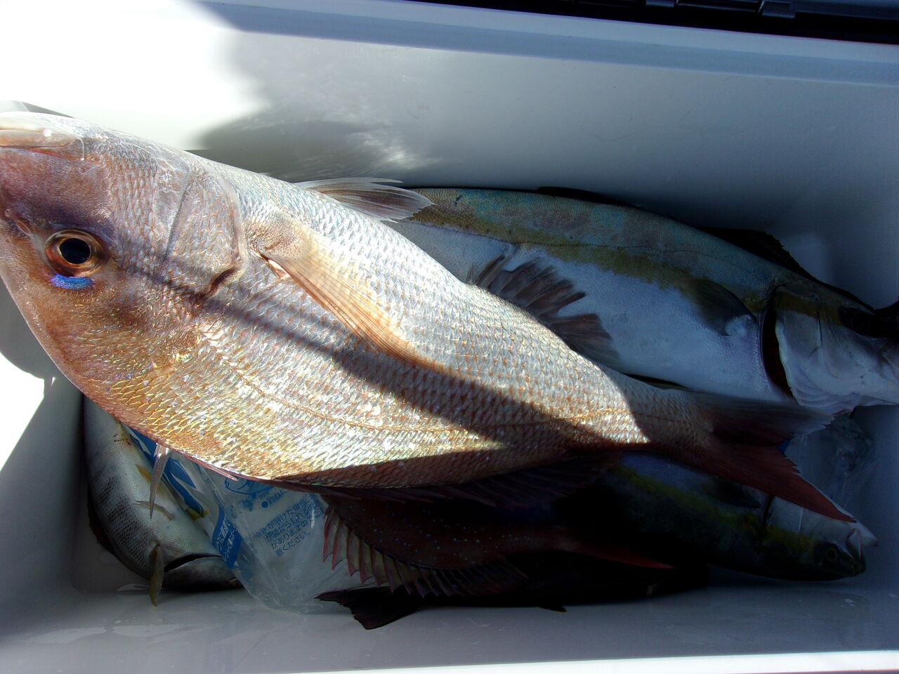 コマセマダイ 2022年10月31日 8人のお客さんと一日便でした。終盤少し風が出ましたが危険な程ではなく最後までやれました。マダイ 0.5〜2.2kg お一人0〜2枚他にイナダ、ヒラマサ、イサキ、シイラが釣れました。マダイは皆さん顔は見てると思いますが、今日は小さいのが多くてカウントできるサイズは多くはなかったです。とにかくイナダが多くて、たまにヒラマサが混じりました。上がったヒラマサは5本位でしょうか。他にもハリス切れ結構あったのでその中にもかなり混じっていただろうと思われます。大きいのが水面近くまで来て切れたのもありましたね。残念でした。 < 前の記事次の記事 >