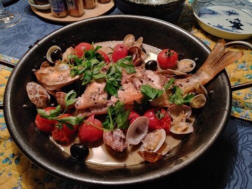 アクアパッツァはメバルの鉄板料理のひとつですね。
