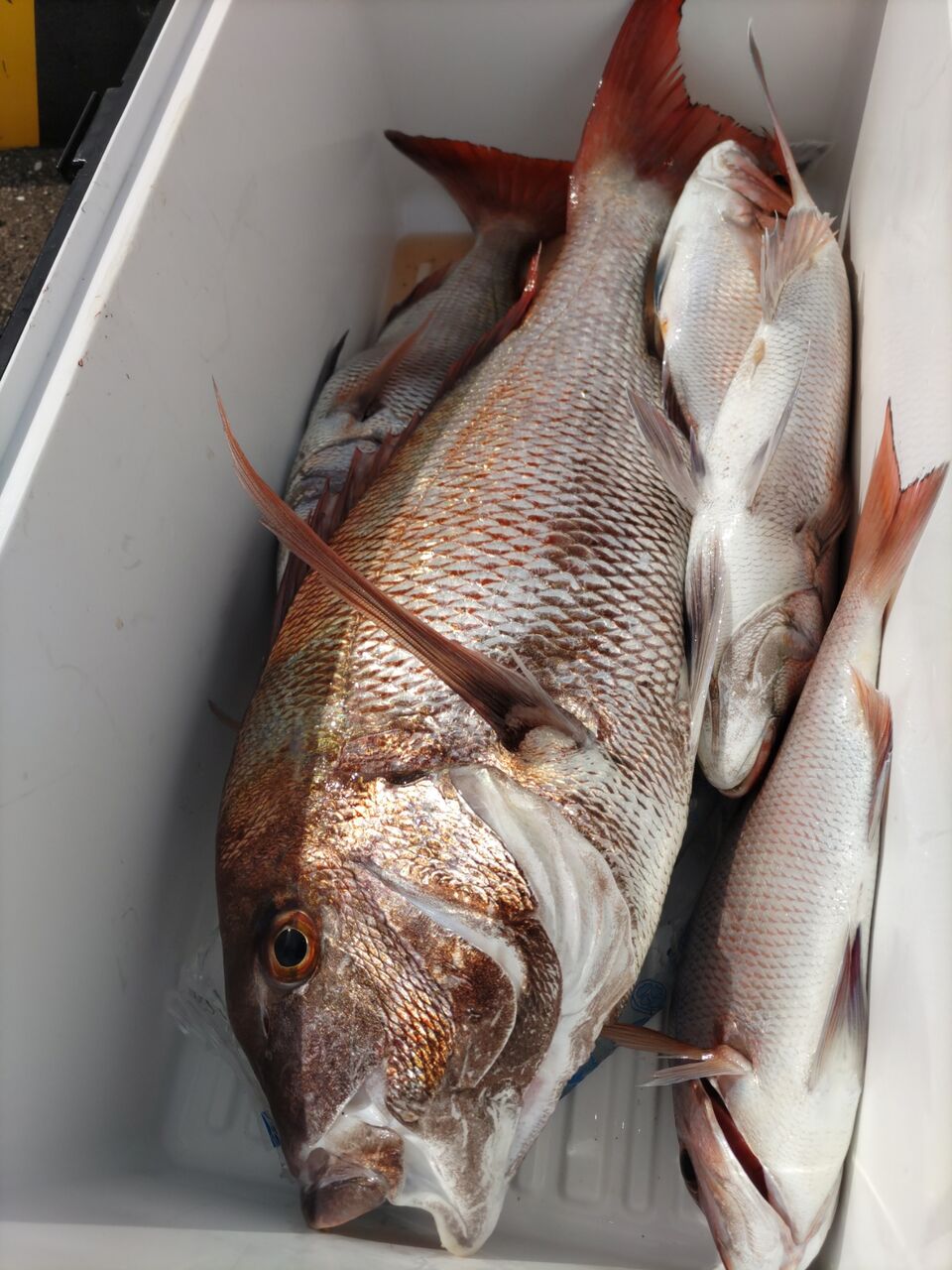 コマセマダイ 2023年09月11日 4人のお客さんと一日便でした。今日は釣行中はほとんど日が出なくてよかったです。マダイ 0.7〜2.9kg お一人2〜7枚他にイナダが釣れました。皆さん釣れてよかったです。1.5kg前後主体で型も悪くなかったです。青物も数匹見えましたね。海の中も少しは秋に近づいているのでしょうか。魚探を見てるとよくサメの反応が出てくるのですが、やられたのは1度だけだったと思います。今年は以前にもそういう日がありました。もちろん結構やられる日もあるのですが、例年とは少し様子が違うような気がします。 < 前の記事次の記事 >