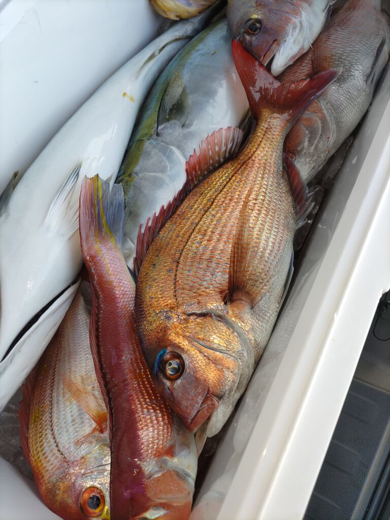 レンコダイは釣れてたのでもしかしたら操船が影響したかもしれません。風とうねりの方向が微妙に違うので船を安定させにくく、仕掛けを浮かせてしまったかも。もしそうなら申し訳なかったです🙇